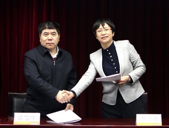 集團(tuán)黨委書(shū)記、董事長(zhǎng)陳鄂生與皮革院黨委書(shū)記楊承杰簽訂黨風(fēng)廉政建設(shè)責(zé)任書(shū)