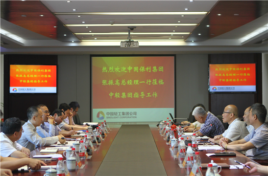 中輕集團(tuán)黨委書記、總經(jīng)理張萬順代表中輕集團(tuán)對保利集團(tuán)張振高總經(jīng)理一行的到來表示熱烈歡迎和衷心感謝,并匯報了中輕集團(tuán)的基本情況、今年以來發(fā)展改革工作進(jìn)展情況、2018~2020年滾動發(fā)展規(guī)劃編制情況等有關(guān)事項。造紙院總經(jīng)理孫波就造紙院的概況、經(jīng)營狀況、發(fā)展思路及存在的問題等作了匯報。