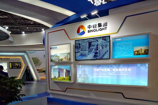 保利聯(lián)合展廳位于500強企業(yè)所在的N3展館。其中,中輕集團(tuán)海誠股份的展臺分為 “食品加工”、“智能工廠”、“環(huán)境保護(hù)”、“健康休閑”四個板塊。