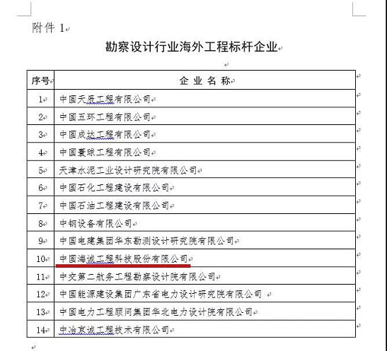 “海外工程標(biāo)桿企業(yè)”是中國(guó)勘察設(shè)計(jì)協(xié)會(huì)為表彰在海外市場(chǎng)開(kāi)拓中取得優(yōu)異成績(jī)的企業(yè)而設(shè)立,本次有14家企業(yè)入圍名錄,是從全國(guó)兩萬(wàn)四千多家勘察設(shè)計(jì)單位中擇優(yōu)選出的。