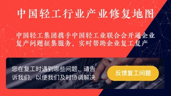 為切實幫助輕工行業(yè)企業(yè)解決復工復產過程中的重點、難點、堵點,中國輕工集團有限公司(中輕集團)攜手中國輕工業(yè)聯合會(中輕聯)推出產業(yè)修復地圖服務,匯聚全行業(yè)政策、預測、實時供需等大數據,依托中輕集團的強大科研實力和中輕聯專業(yè)的行業(yè)指導咨詢能力,為企業(yè)搭建信息匯聚、風險防控、發(fā)展咨詢、資源調配的平臺,從而疏堵解痛,加速企業(yè)達產滿產。