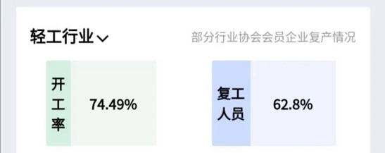 此外,小程序在首頁展示了收集到的各省份以及輕工各行業(yè)整體復工情況數據,方便企業(yè)增進對行業(yè)的直觀了解,加深對行業(yè)的深度認識,從而對企業(yè)自身有更加明晰的判斷。