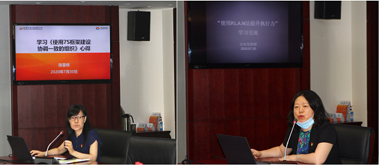 辦公室主任陳薈欞圍繞徐念沙書記黨課和《使用7S框架建設(shè)協(xié)調(diào)一致的組織》課程內(nèi)容,結(jié)合中輕集團(tuán)宣傳冊(cè)制訂工作分享學(xué)習(xí)心得;總經(jīng)理助理、企業(yè)發(fā)展部主任肖丹圍繞徐念沙書記黨課和《使用PLAN法提升執(zhí)行力》課程內(nèi)容,結(jié)合中輕集團(tuán)戰(zhàn)略規(guī)劃編制工作與大家進(jìn)行充分交流。