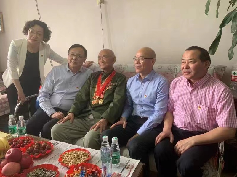 6月18日上午,劉軍才、張萬順、郭建全、曹文素一行前往73年黨齡的趙金生老先生家中慰問。1948年,趙老在東北民主聯(lián)軍六隊警衛(wèi)營行軍舟戰(zhàn)斗中立大功一次;1949年,在四野43軍司令部四連南下行軍中立功一次;建國后,遠赴朝鮮參加抗美援朝戰(zhàn)爭。劉軍才一行仔細觀摩趙老獲得的多枚紀念章,對他為黨的解放事業(yè)和新中國建設所做的貢獻表示感謝。
