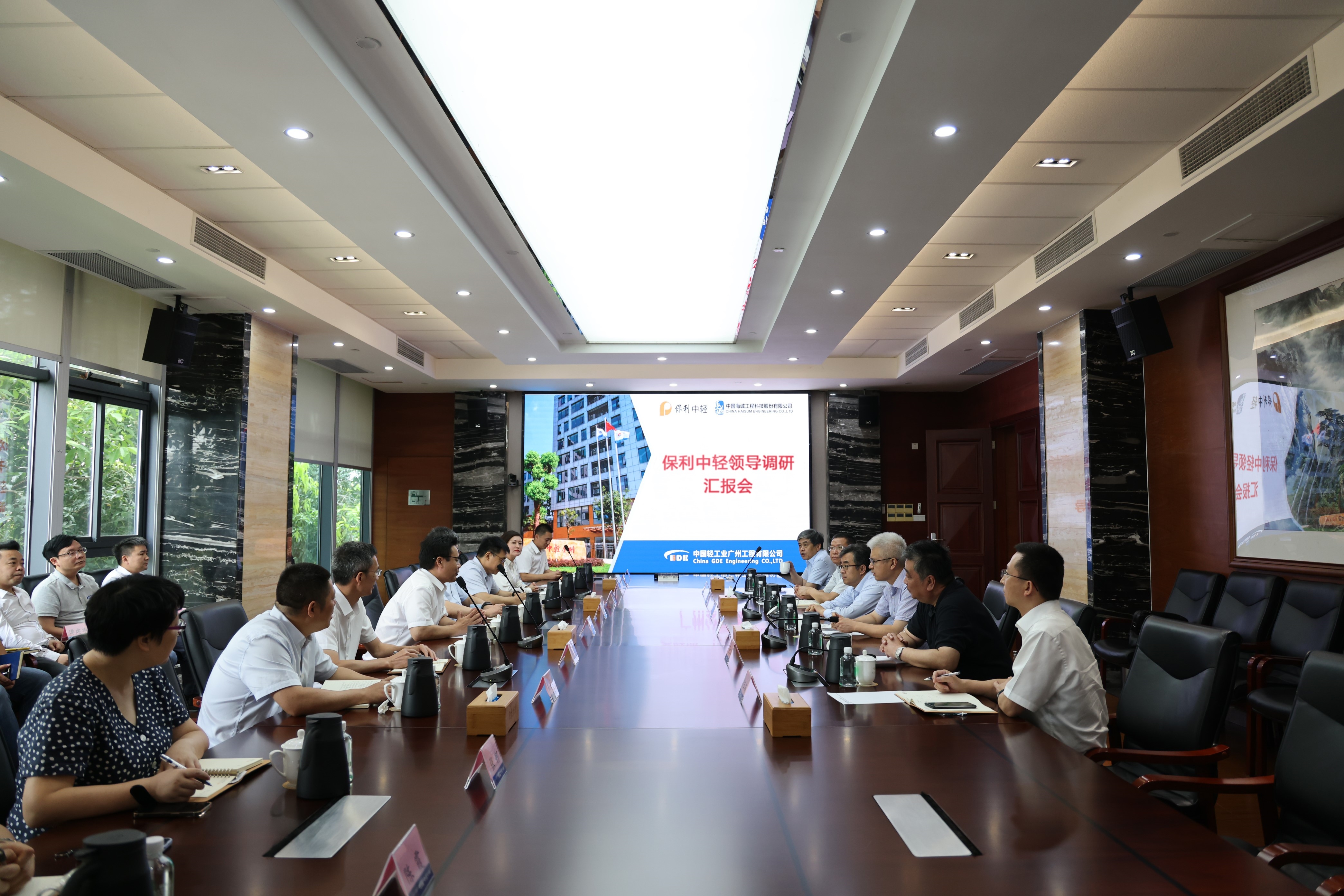 8月5日,保利集團(tuán)總經(jīng)理助理,保利中輕黨委書記、董事長(zhǎng)安勝杰赴保利中輕所屬中國(guó)海誠(chéng)廣州公司開(kāi)展調(diào)研。保利中輕副總經(jīng)理姜浩,副總經(jīng)理、總會(huì)計(jì)師段趙清,副總經(jīng)理蔡木易,總工程師曹春昱,總經(jīng)濟(jì)師趙國(guó)昂等參加了調(diào)研活動(dòng)。