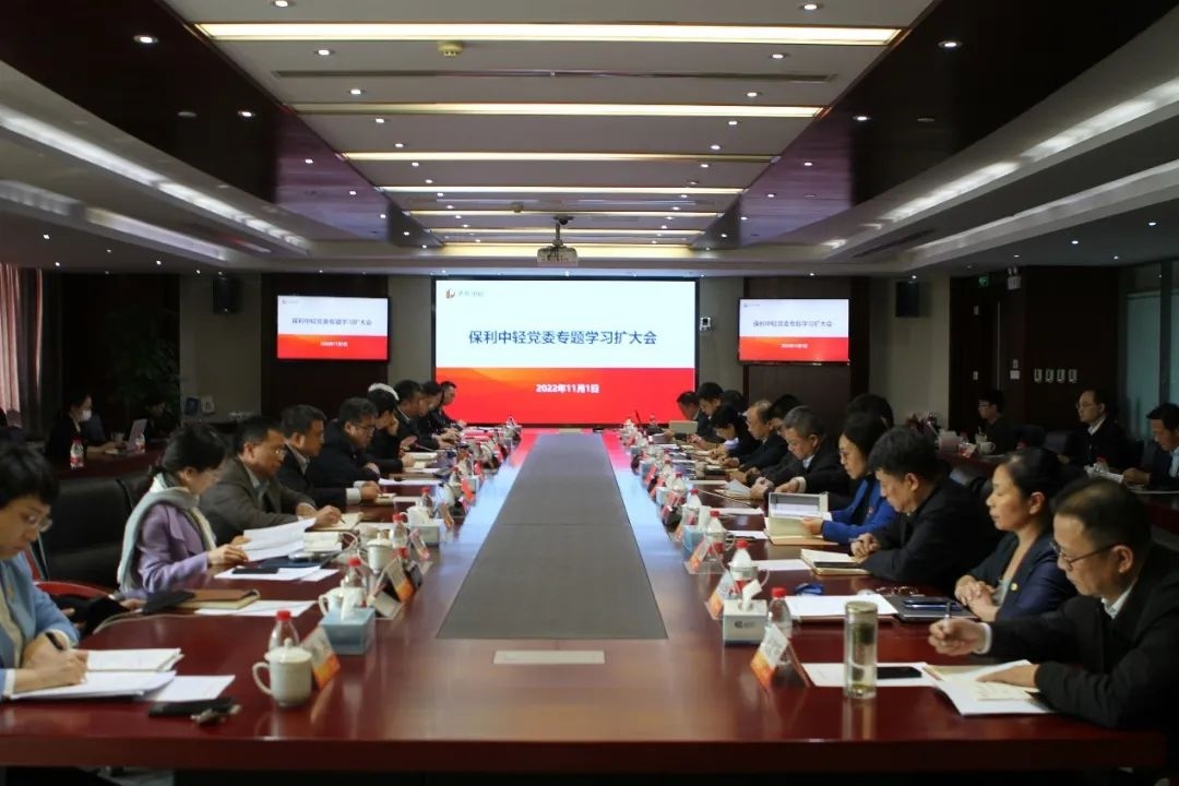 在全面學(xué)習(xí)貫徹黨的二十大精神之際,全面啟動部署明年全面預(yù)算工作之時(shí),保利中輕黨委按照保利集團(tuán)黨委要求原原本本學(xué)習(xí)的同時(shí),11月1日下午組織召開黨委專題學(xué)習(xí)擴(kuò)大會,緊緊圍繞“深入學(xué)習(xí)貫徹黨的二十大精神,落實(shí)‘八維精益’理念,推進(jìn)高質(zhì)量發(fā)展”主題,結(jié)合企業(yè)實(shí)際進(jìn)行集中學(xué)習(xí)研討。保利中輕黨委書記、董事長安勝杰主持會議并總結(jié)講話。保利中輕領(lǐng)導(dǎo)班子成員、總經(jīng)理助理、總部各部門負(fù)責(zé)人,二級子公司黨政主要負(fù)責(zé)人分別以現(xiàn)場和視頻形式參會。
