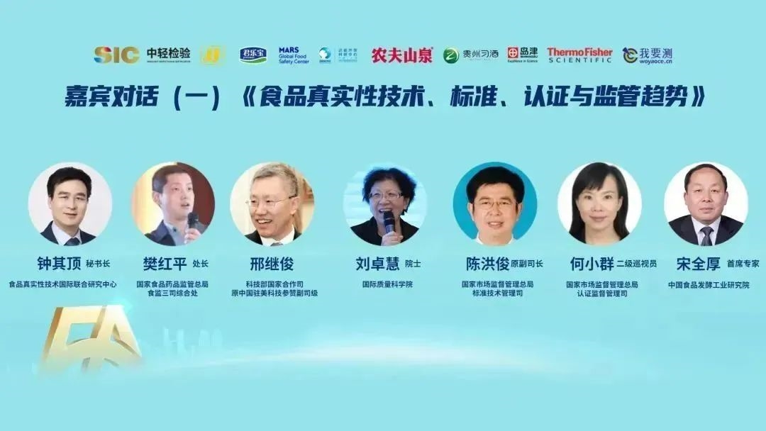 在嘉賓對話環(huán)節(jié),國家質(zhì)量監(jiān)督檢驗檢疫總局原總工程師、中國防偽行業(yè)協(xié)會理事長劉卓慧,國家市場監(jiān)督管理總局標準技術(shù)管理司原副司長(正司級)陳洪俊,國家市場監(jiān)管總局特殊食品安全監(jiān)管司副司長樊紅平,科技部國際合作司、原中國駐美科技參贊邢繼俊,國家市場監(jiān)督管理總局認證監(jiān)督管理司二級巡視員何小群、中國食品發(fā)酵研究院首席專家宋全厚教授圍繞“食品真實性技術(shù)、標準、認證與監(jiān)管趨勢”主題,分別從國家質(zhì)量基礎(chǔ)設(shè)施建設(shè)、食品質(zhì)量標準體系建設(shè)、高品質(zhì)認證、保健食品監(jiān)管趨勢、國際科技合作、食品真實性檢測和認證等方面進行討論,并達成共建食品真實性產(chǎn)業(yè)生態(tài)科學共識。