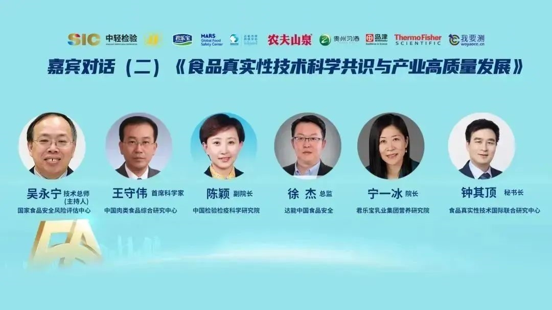 國家食品安全風險評估中心技術(shù)總師吳永寧、中國肉類食品綜合研究中心首席科學家王守偉、中國檢驗檢疫科學研究院副院長陳穎、達能中國食品安全總監(jiān)徐杰、君樂寶乳業(yè)集團營養(yǎng)研究院院長寧一冰、食品真實性技術(shù)國際聯(lián)合研究中心秘書長鐘其頂就“食品真實性技術(shù)科學共識與產(chǎn)業(yè)高質(zhì)量發(fā)展”展開對話,從各自研究領(lǐng)域探討食品真實性現(xiàn)狀、真實性發(fā)展趨勢和企業(yè)如何保障產(chǎn)品品質(zhì)安全、真實。