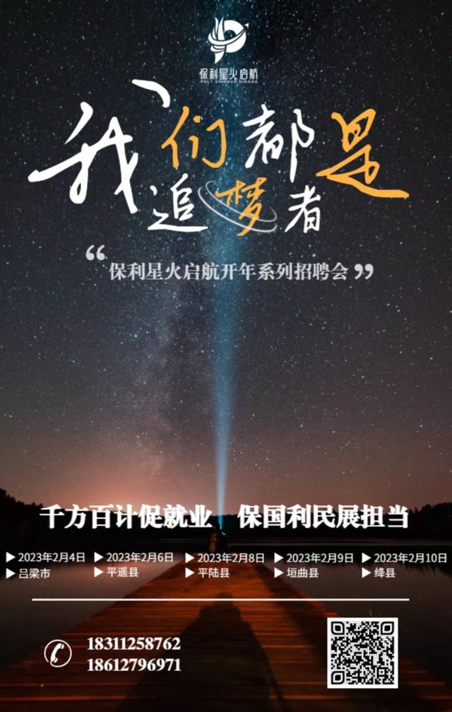 春風(fēng)送真情,援助暖民心。為將更多境外優(yōu)質(zhì)崗位提供給山西省群眾,助力當(dāng)?shù)厝罕娋蜆I(yè)增收,2023年2月,保利中輕所屬中輕控股派遣的保利星火啟航項(xiàng)目組參加了山西省人力資源和社會(huì)保障廳在山西各地陸續(xù)舉辦的“惠民生 促就業(yè)”—春風(fēng)行動(dòng)暨就業(yè)援助月系列招聘活動(dòng),分別赴山西省晉中市平遙縣、呂梁市離石區(qū)、興縣、運(yùn)城市平陸縣、垣曲縣等地現(xiàn)場(chǎng)招聘。