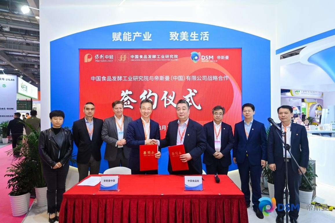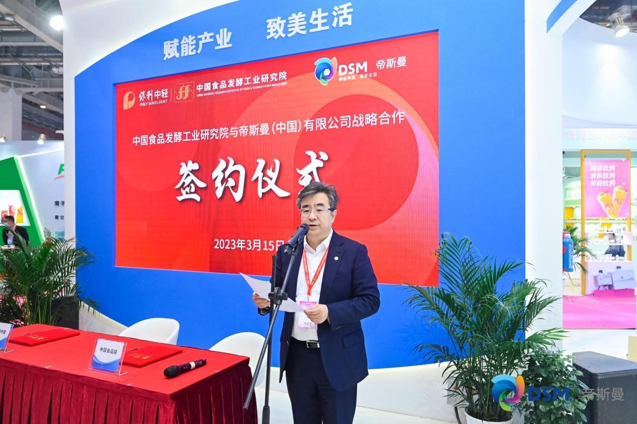 展會期間,中國食品發(fā)酵工業(yè)研究院與帝斯曼(中國)有限公司舉行“營養(yǎng)健康原料標(biāo)準(zhǔn)化聯(lián)合研究中心”戰(zhàn)略合作簽約儀式。安勝杰表示,雙方將發(fā)揮帝斯曼集團(tuán)在健康、營養(yǎng)和生物科學(xué)領(lǐng)域等方面的核心技術(shù)優(yōu)勢,以及中國食品發(fā)酵工業(yè)研究院在食品發(fā)酵行業(yè)質(zhì)量安全保障、成果產(chǎn)業(yè)化、產(chǎn)品研發(fā)資源等方面的行業(yè)積淀,實(shí)現(xiàn)創(chuàng)新發(fā)展、互惠互利,共同推動食品產(chǎn)業(yè)標(biāo)準(zhǔn)化水平和質(zhì)量安全的全面提升。