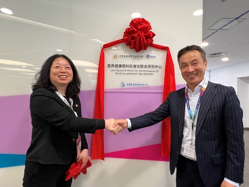 簽約儀式后,肖丹帶隊(duì)到帝斯曼(中國)總部和研發(fā)中心進(jìn)行考察對接,參觀帝斯曼中心實(shí)驗(yàn)室,并為“營養(yǎng)健康原料標(biāo)準(zhǔn)化聯(lián)合研究中心”揭牌。