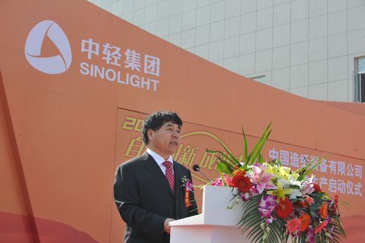陳鄂生董事長代表中輕集團致辭。他向出席啟動儀式的各位領(lǐng)導(dǎo)、各位專家、全國的優(yōu)秀企業(yè)家們表示熱烈的歡迎和衷心的感謝。他指出,永清基地的生產(chǎn)啟動,為集團公司裝備板塊實現(xiàn)跨越式發(fā)展打下了堅實的基礎(chǔ),成為集團打造新的產(chǎn)業(yè)價值鏈的關(guān)鍵一環(huán)。中國造紙裝備有限公司要緊緊抓住國家振興裝備制造業(yè)的關(guān)鍵機遇,憑借在造紙領(lǐng)域的科研、咨詢設(shè)計、總承包、工程化推廣及實施能力,整合國內(nèi)外優(yōu)質(zhì)資源,突破造紙裝備關(guān)鍵技術(shù)瓶頸,實現(xiàn)集成創(chuàng)新,為造紙企業(yè)提供具有性價比優(yōu)勢的先進成套裝備和優(yōu)質(zhì)服務(wù),擔(dān)當(dāng)起振興民族造紙裝備工業(yè)的歷史使命。他預(yù)祝造紙裝備自主化集成(永清)基地的生產(chǎn)啟動取得圓滿成功!
