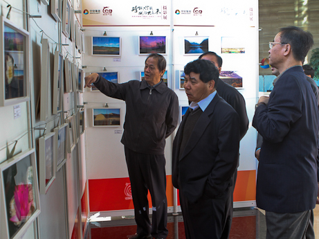 集團(tuán)董事長(zhǎng)陳鄂生等領(lǐng)導(dǎo)在觀看攝影作品