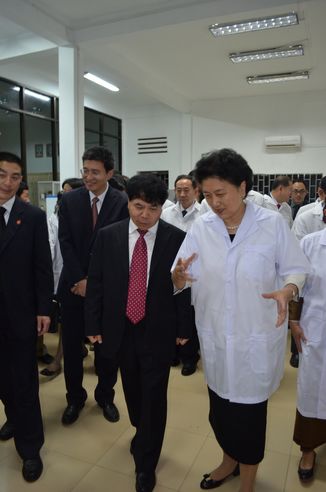 揭牌儀式后,陳鄂生董事長陪同劉延?xùn)|國務(wù)委員與梅森安副首相參觀了建設(shè)中實(shí)驗(yàn)室。劉延?xùn)|詳細(xì)地詢問了設(shè)備功能,要求嚴(yán)格控制援助設(shè)備的質(zhì)量,詳細(xì)論證援助方案,使援助項(xiàng)目切實(shí)滿足柬方實(shí)際需求。陳董事長感謝劉延?xùn)|國務(wù)委員對中輕集團(tuán)的關(guān)心和支持,表示一定落實(shí)指示精神,建設(shè)好援助項(xiàng)目。